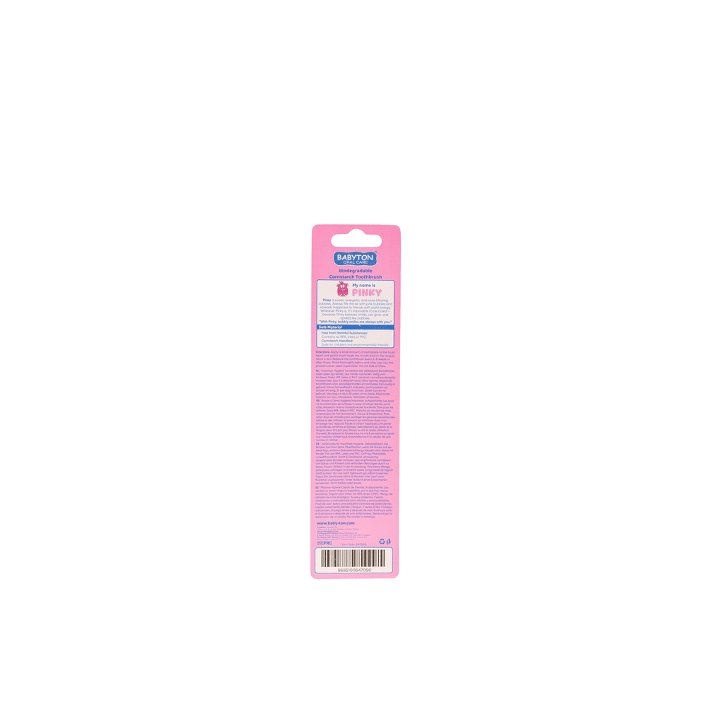 De Babyton Bio Tandenborstel Roze Pinky combineert duurzaamheid, veiligheid en plezier. Perfect voor dagelijks tandenpoetsen en het opbouwen van een gezonde mondhygiëne bij kinderen.