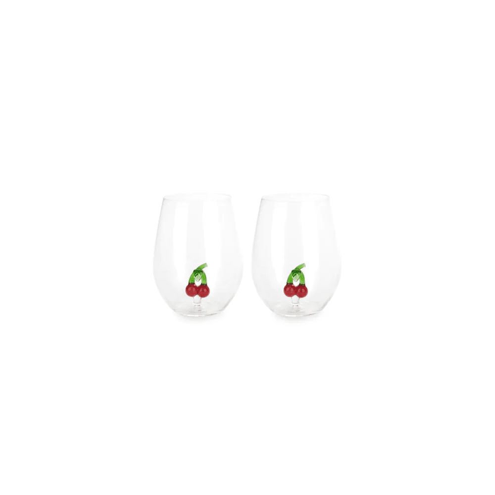 Elk glas bevat een uniek handgemaakt kersenfiguurtje dat zorgt voor een speels en opvallend detail. De set van 2 glazen past bovendien perfect bij de bijpassende fles, waardoor je tafel een stijlvolle botanische uitstraling krijgt.