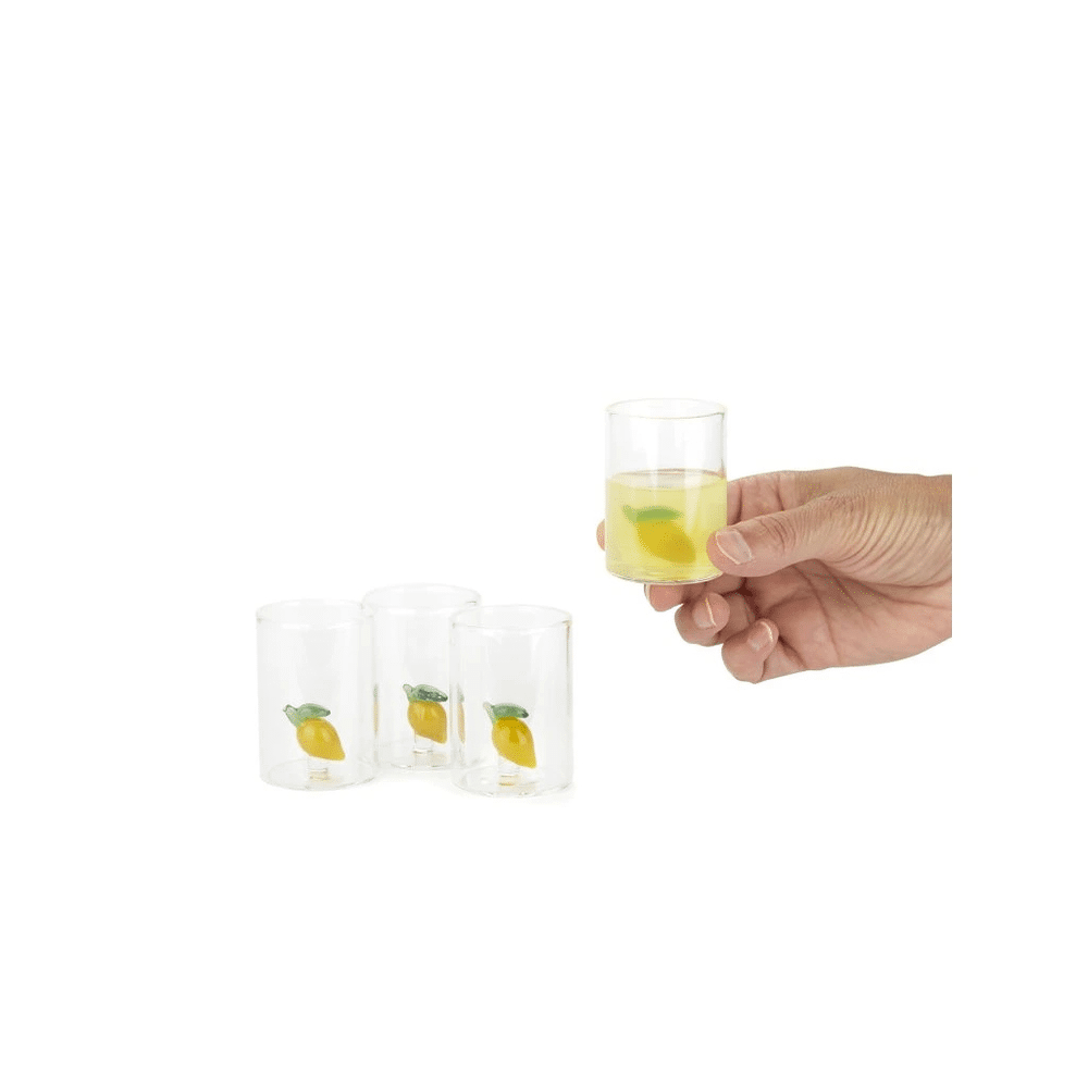 Het handgemaakte citroenfiguurtje binnenin elk glaasje maakt elk stuk uniek. Dankzij de inhoud van 50 ml zijn de glaasjes perfect voor kleine feestjes thuis, diners of gezellige proostmomenten met vrienden.
