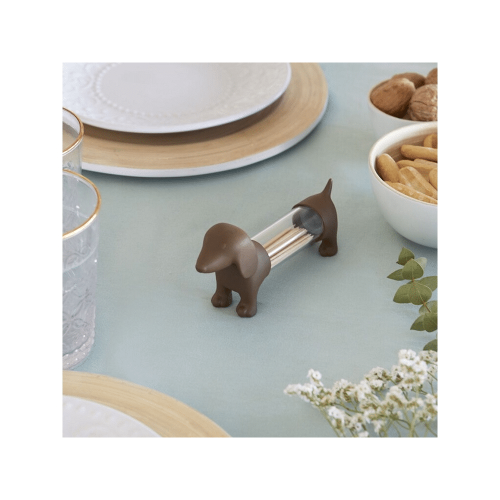 De Balvi Teckel Tandenstokerhouder Bruin is een speels en praktisch accessoire voor in de keuken of bar. Een originele en charmante manier om je prikkers of specerijen te organiseren.