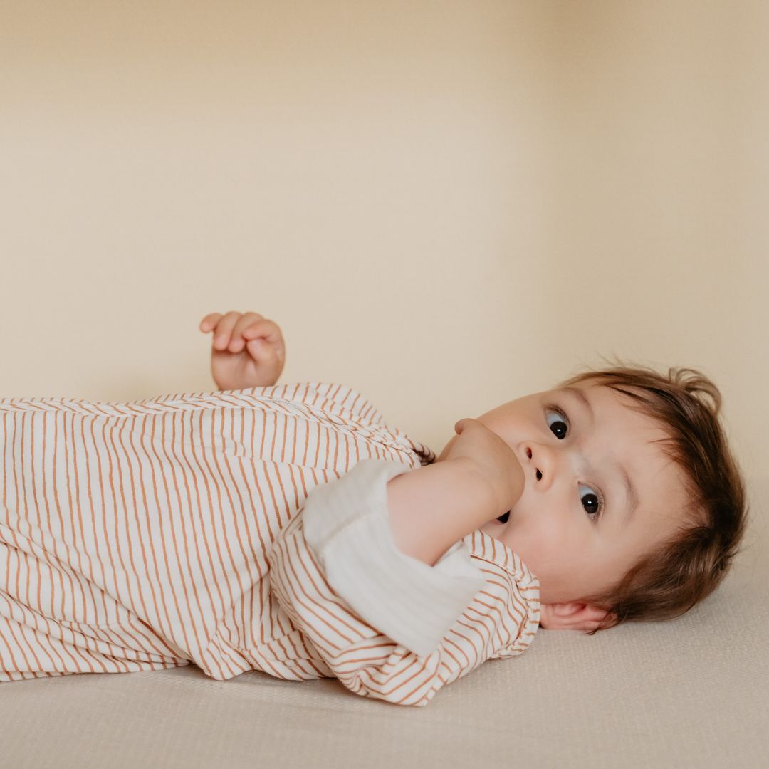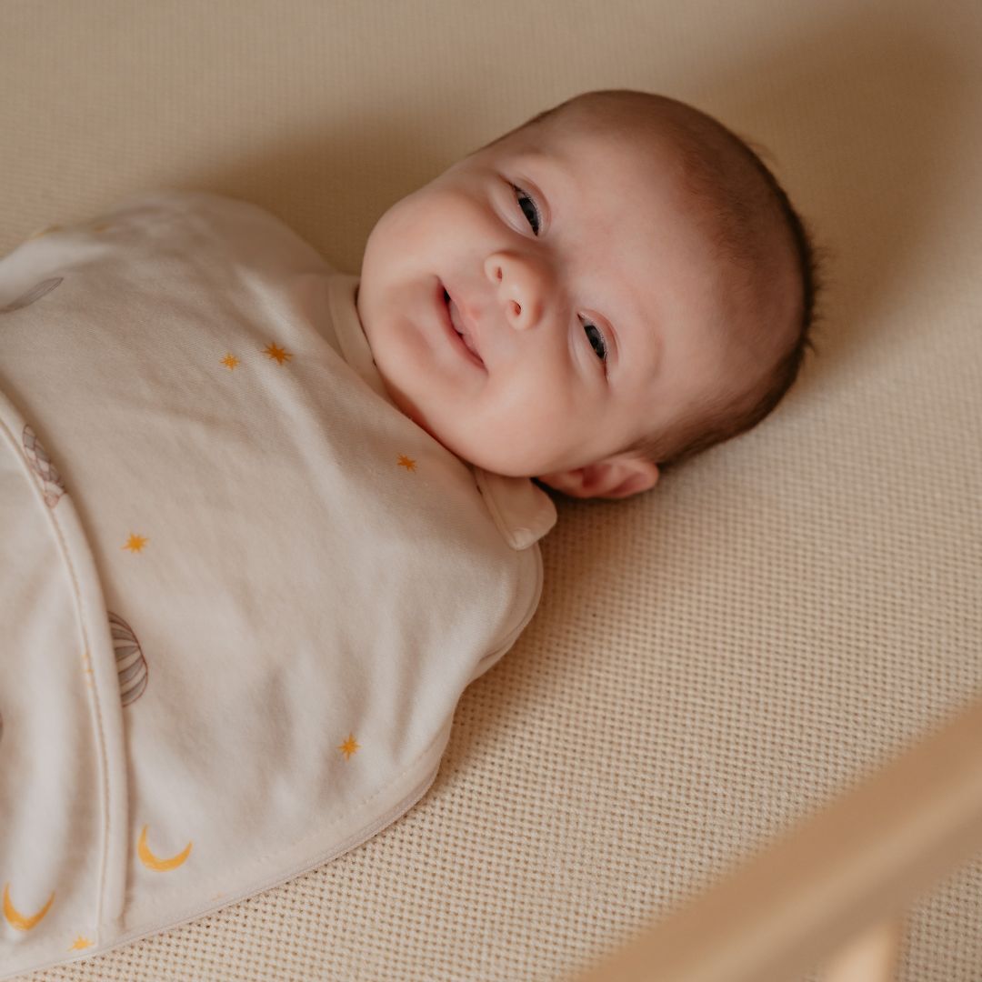 Na een paar maanden begint je baby te rollen en de wereld om zich heen te ontdekken. Dit is het moment om het inbakeren stilaan af te bouwen. De Mini is een slim twee-in-één-slaapzakje dat deze overgang eenvoudig en veilig maakt. Dankzij de handige ritsen bij de schouders kun je de armpjes stap voor stap vrijmaken, zodat je kleintje rustig kan wennen aan slapen zonder ingebakerde armpjes. Zo blijft de grote wereld nog even klein en geborgen.