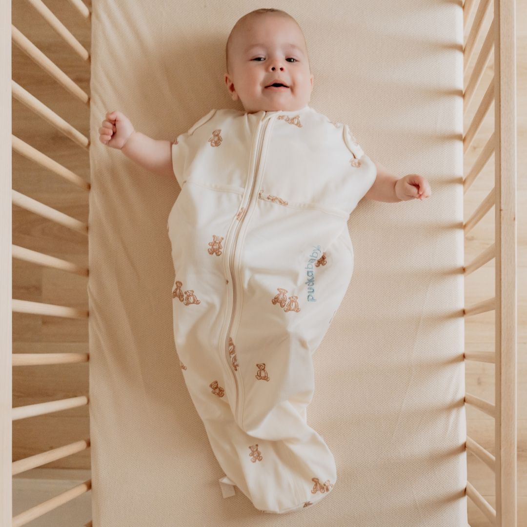 Ontdek de slaapzakjes van Puckababy nu in de prachtige nieuwe prints: Hazel Stripes, Tiny Village, Bunnies, Swans, Balloons en Teddy Bears.