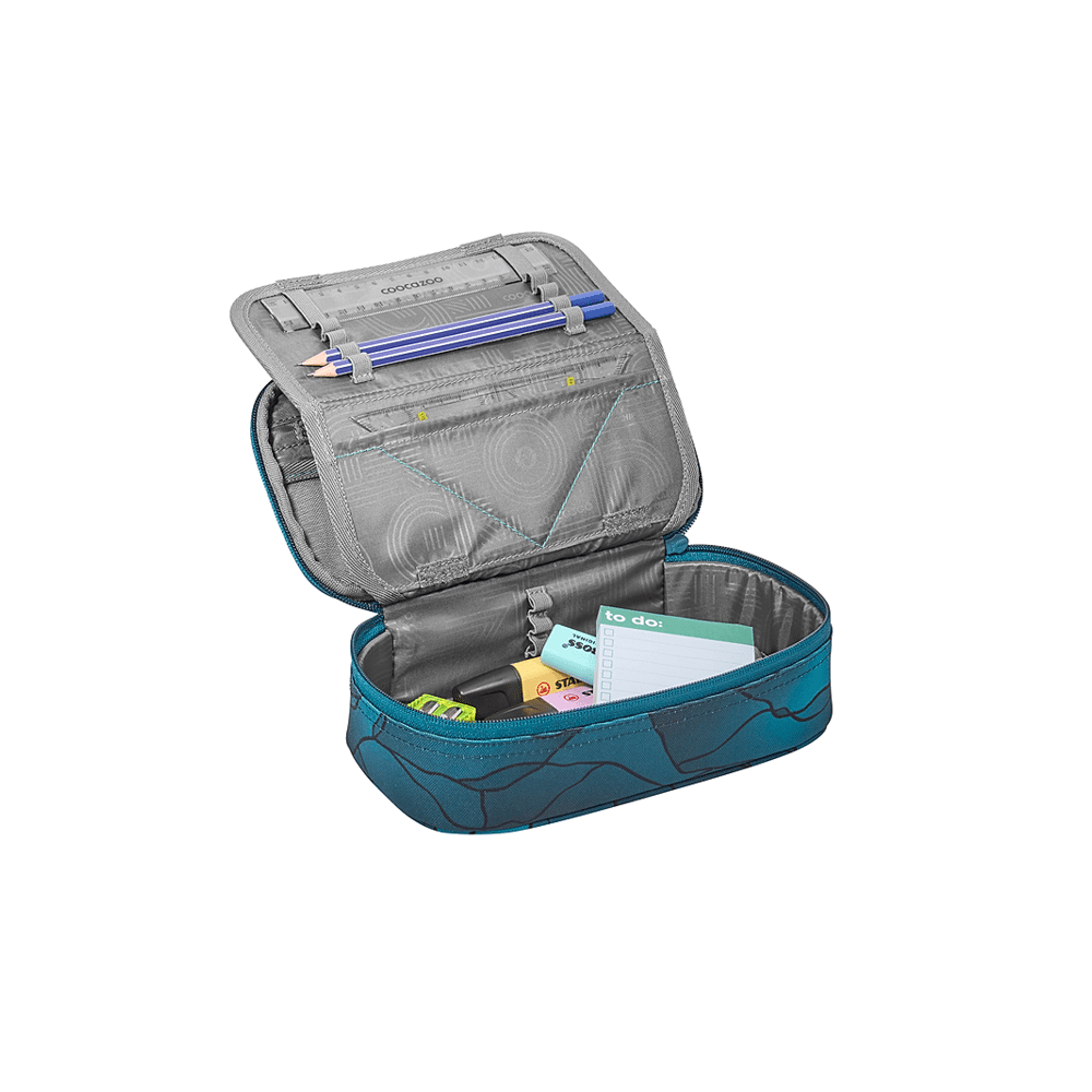 Deze ruime Coocazoo etui in de frisse kleur Crystal Waves is jouw beste maatje op school. Dankzij het slimme ontwerp blijft alles netjes op z'n plek. Met afmetingen van 245 x 125 x 65 mm en gemaakt van stevig polyester (uit gerecycleerde PET-flessen!) is dit een praktische én duurzame keuze. En ja hoor, een geodriehoek en kleine liniaal krijg je er gewoon bij!Orde in de chaos? Check!
