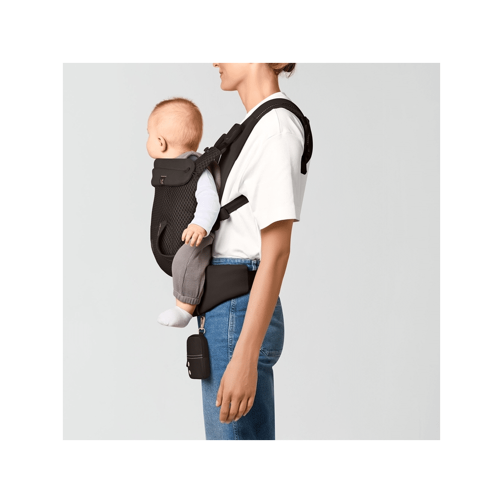 Zeker! Het lichte, ademende materiaal zorgt voor extra comfort, zelfs bij langer dragen. Je wisselt makkelijk tussen draagposities, ideaal voor thuis en onderweg.