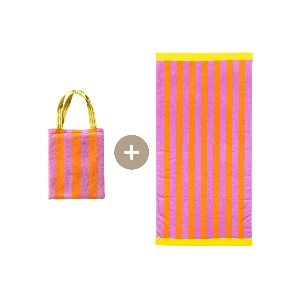 De strandtas is ruim en stevig, ideaal voor zonnecrème, snacks en een boek. Het strandlaken voelt zacht aan en droogt snel. Samen zorgen ze voor een functioneel en fashionable duo dat jouw stranddag zorgeloos maakt.
