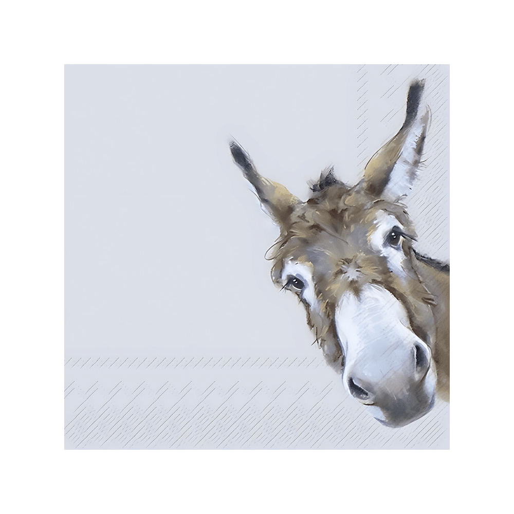 De Ihr 10789 Donkey Gonzo Lunchservet Grey geeft je tafel een speelse en charmante uitstraling. Met grappige ezelillustraties op een grijze achtergrond maak je lunch, brunch of borrels extra gezellig en uitnodigend.
