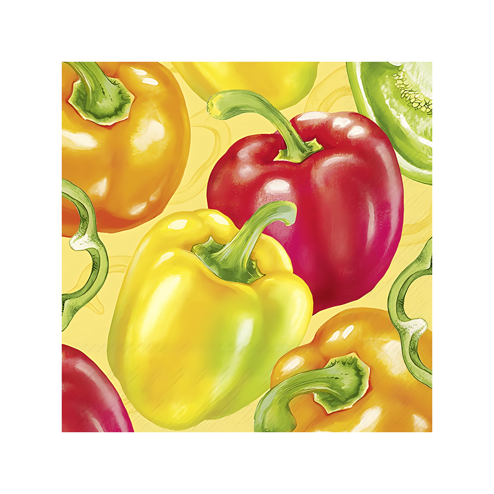 De Ihr 10795 Paprika Lunchservet Yellow geeft je tafel een frisse en kleurrijke uitstraling. Met levendige paprikaillustraties op een gele achtergrond maak je lunch, brunch of borrels extra gezellig en uitnodigend.