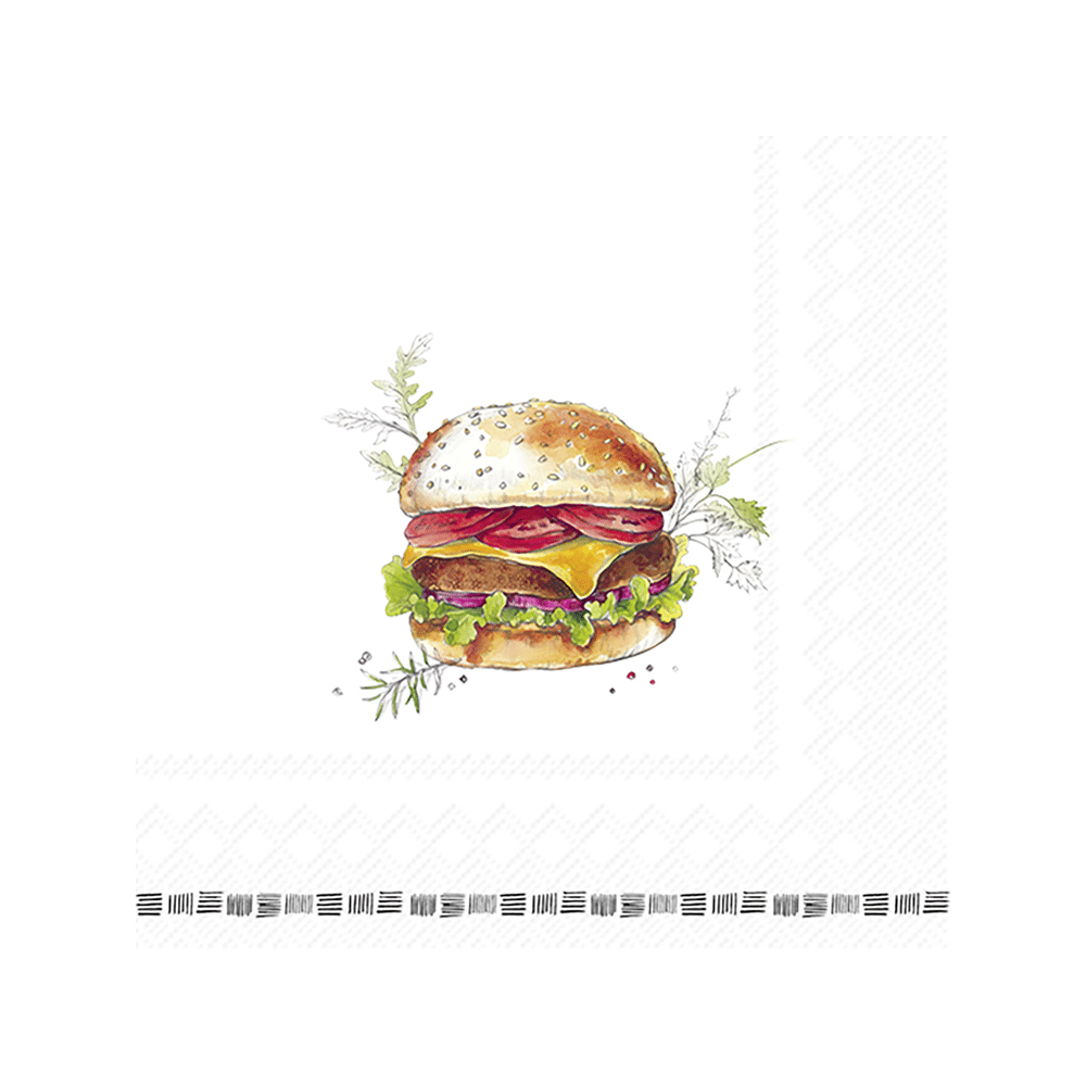 De Ihr 10972 Homemade Burger Lunchservet Mix brengt een speelse en feestelijke touch aan je tafel. Met vrolijke hamburgerprints maak je lunch, borrel of diner extra gezellig en uitnodigend.