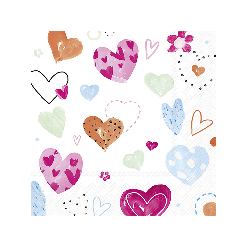 Leg de Joyful Hearts servetten op tafel bij lunch, snacks of borrels. Combineer met bijpassende borden, bestek of feestdecoratie voor een complete en vrolijke presentatie.