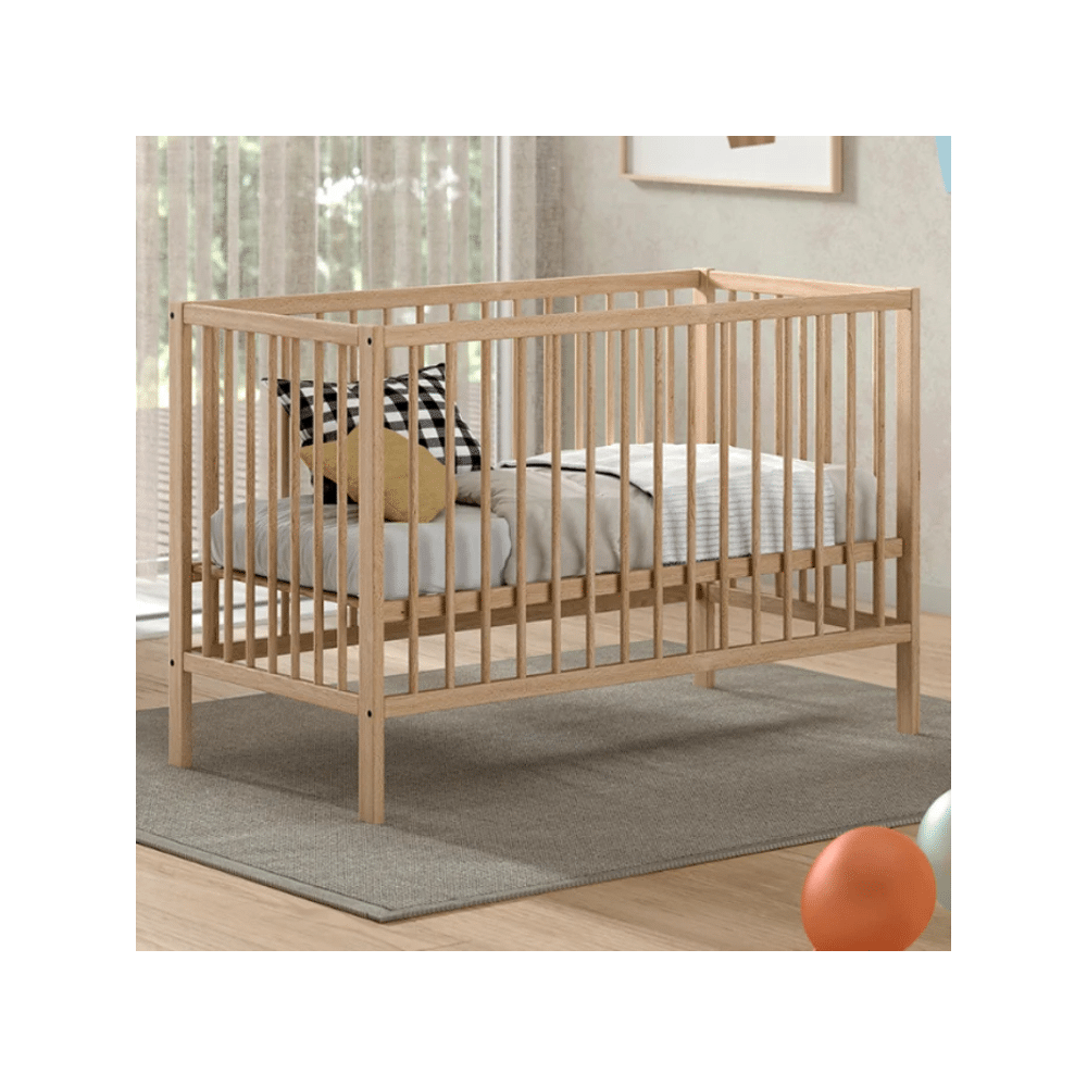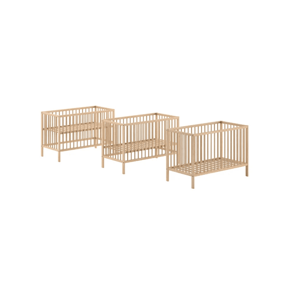 Het bed is duurzaam en praktisch. De verstelbare lattenbodem op drie hoogtes past zich aan de groei van je kindje aan, van de eerste dagen tot de peutertijd.