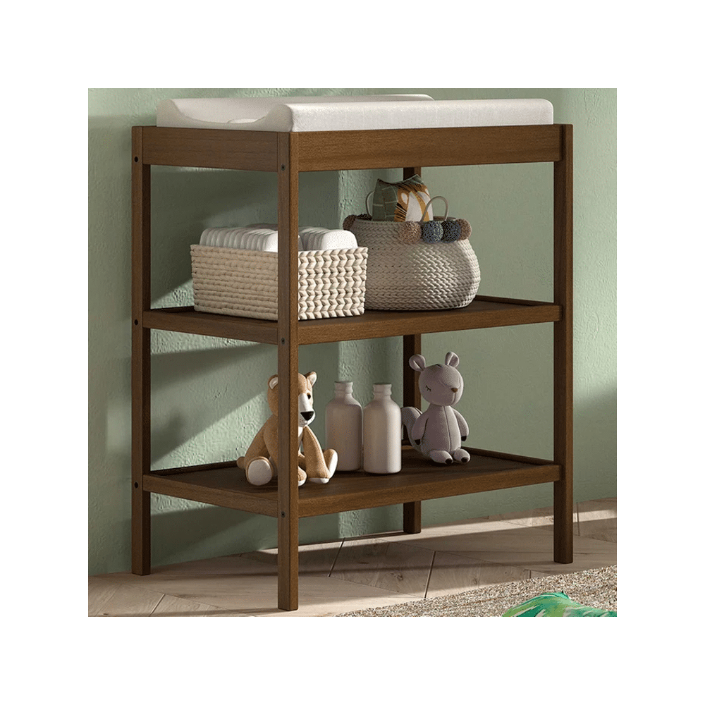 De duurzame constructie en walnut afwerking geven de tafel een warme uitstraling. Ideaal voor ouders die een betrouwbare en elegante verzorgingstafel zoeken.
