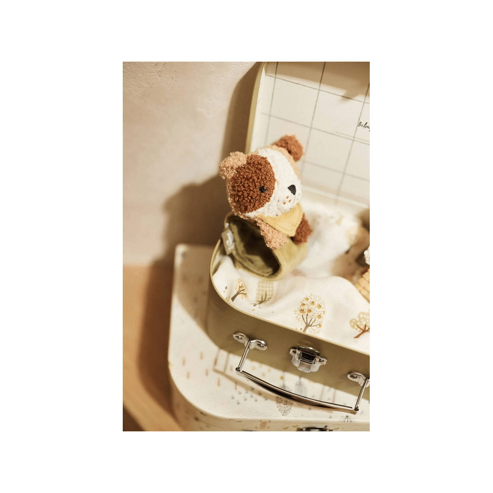 De Jollein Polsrammelaar Mick houdt je kleintje actief en nieuwsgierig.Kleurrijke en zachte materialen zorgen voor uren speelplezier en ontdekken van geluiden.