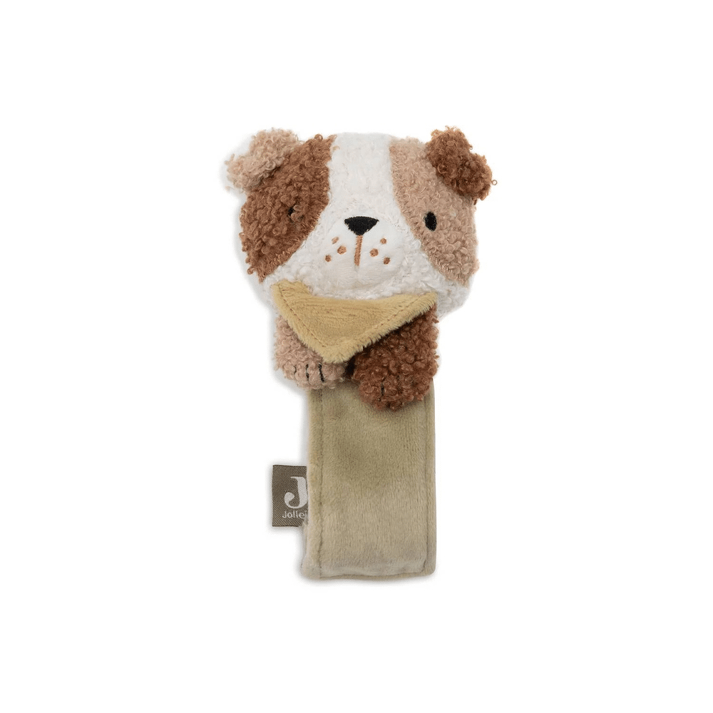 De Jollein Polsrammelaar Mick combineert plezier, leren en veilig design.Een vrolijk rammelaar waarmee je kleintje spelenderwijs ontdekt en geniet!