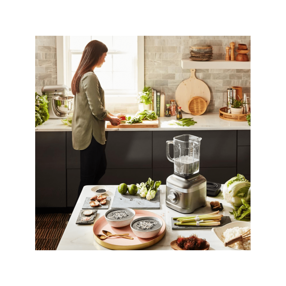 De K400 is uitgerust met een duurzame glazen kan van 1.4 liter en een vermogen dat zelfs harde ingrediënten zoals noten en ijs moeiteloos aankan. Het elegante tingrijs design past bovendien in elke keukenstijl en maakt blenden een plezierige ervaring.