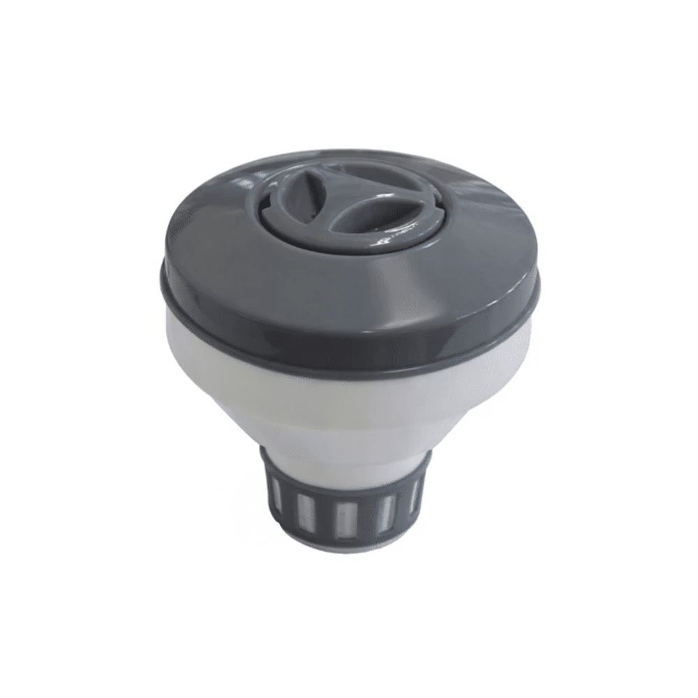 De chloordispenser drijft op het water en geeft geleidelijk chloor af via instelbare openingen. Zo bepaal je zelf de juiste dosering en hou je het water in topconditie met minimale inspanning.