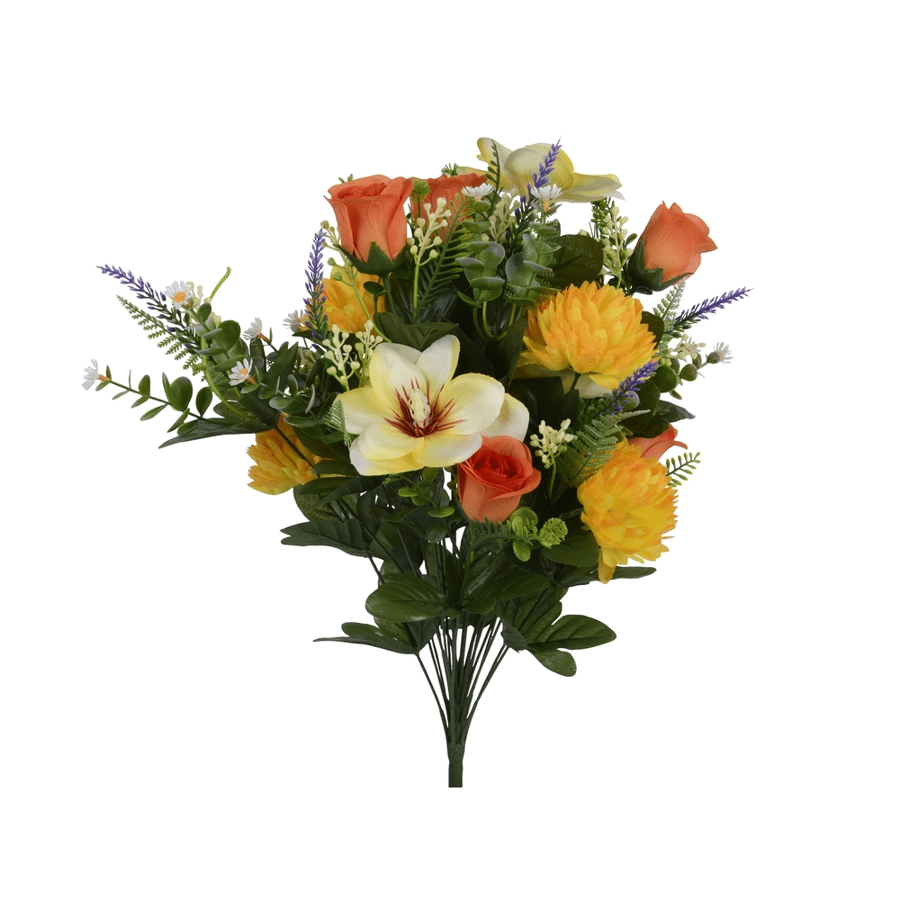 Met dit kleurrijke kunstbloemenboeket geniet je zonder zorgen van een vrolijke sfeer. Plaats het in je woonkamer, slaapkamer of kantoor en ervaar hoe de levendige kleuren je ruimte transformeren.| Product code | 1067457 |