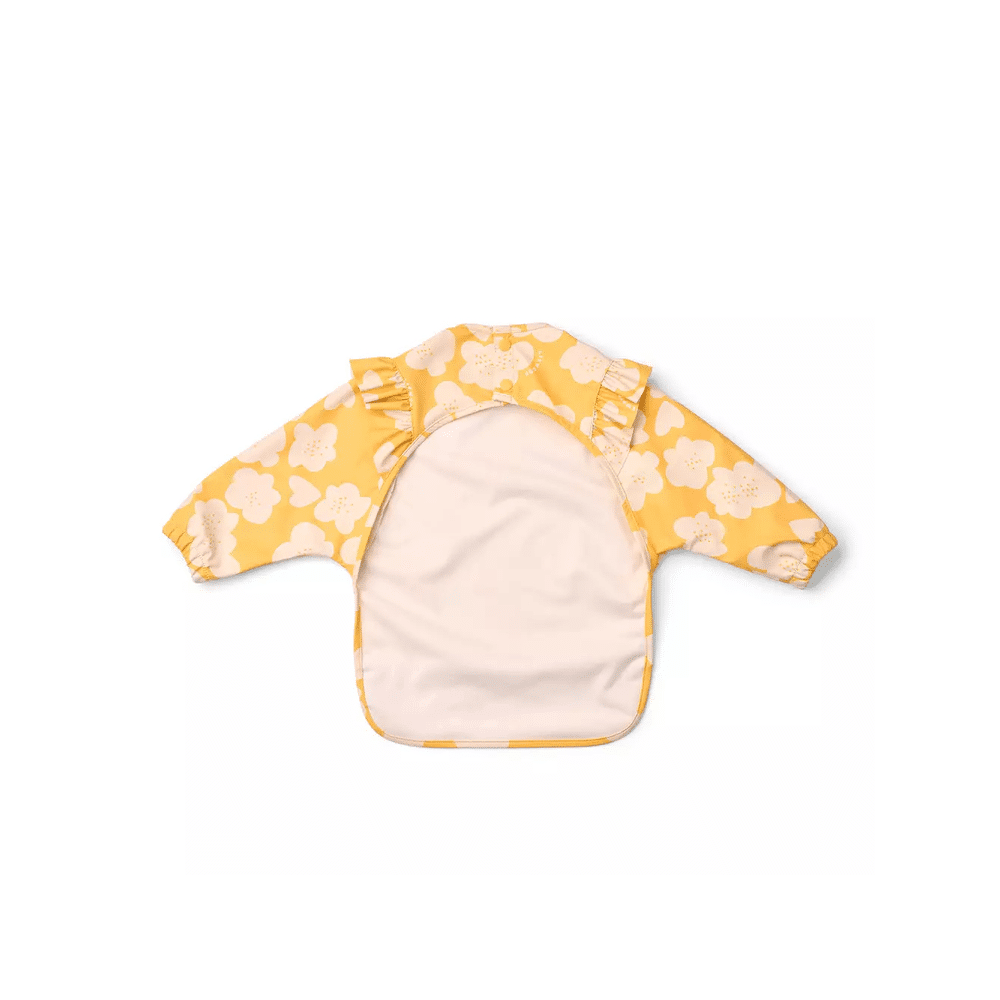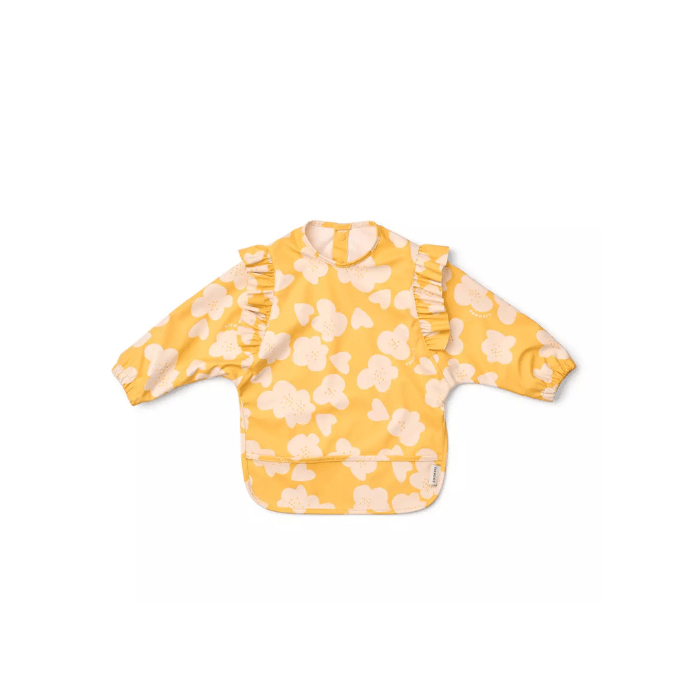 Met de Liewood Merle Ruffle Slab met Mouw Flower / Lemon Yellow blijft kledij van je kindje schoon tijdens elke maaltijd. De zachte, waterafstotende stof en het speelse ruffle-detail maken eten leuk en zorgeloos.
