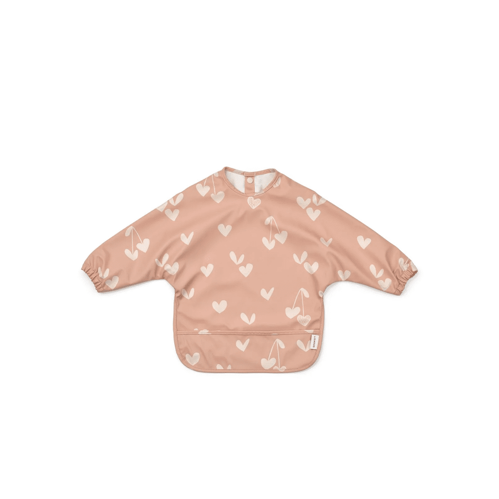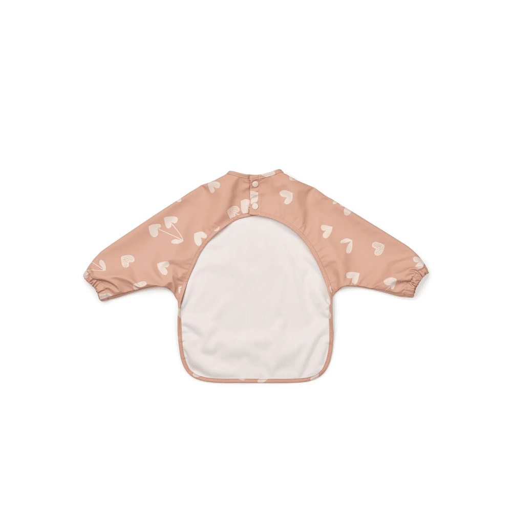De Liewood Merle Slab met Mouw Sweethearts / Pale Tuscany houdt de kledij van je kindje schoon tijdens elke maaltijd. Het zachte, waterafstotende materiaal en het charmante Sweethearts-design maken eten leuk en stressvrij.