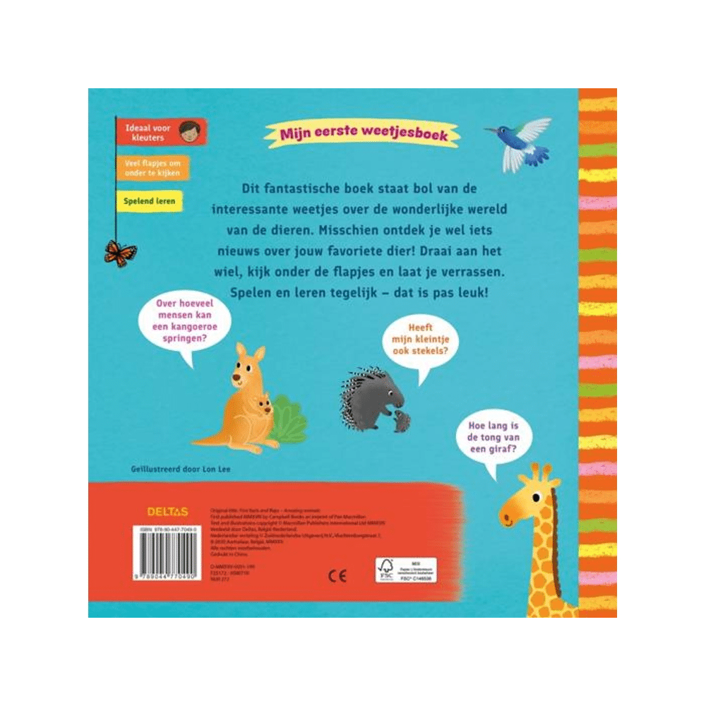 Met Mijn Eerste Weetjesboek Bij De Dieren leert je kind op een speelse manier alles over dieren. Vol leuke feiten en kleurrijke illustraties die nieuwsgierigheid stimuleren.