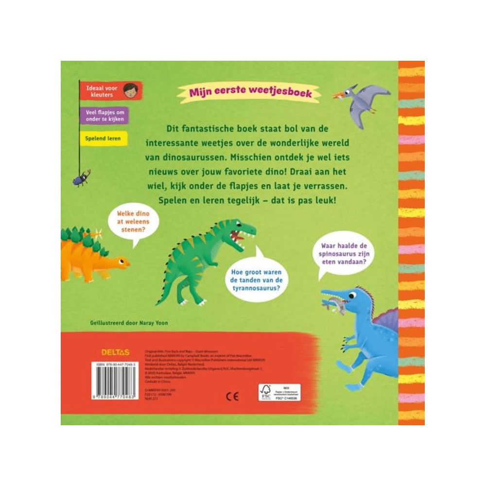 Dit interactieve weetjesboek zit boordevol flapjes en een draaiend wiel waardoor elk leesuurtje een echte ontdekkingstocht wordt. Achterin vind je bovendien een reuzegrote uitvouwpagina met nog meer dino-informatie.