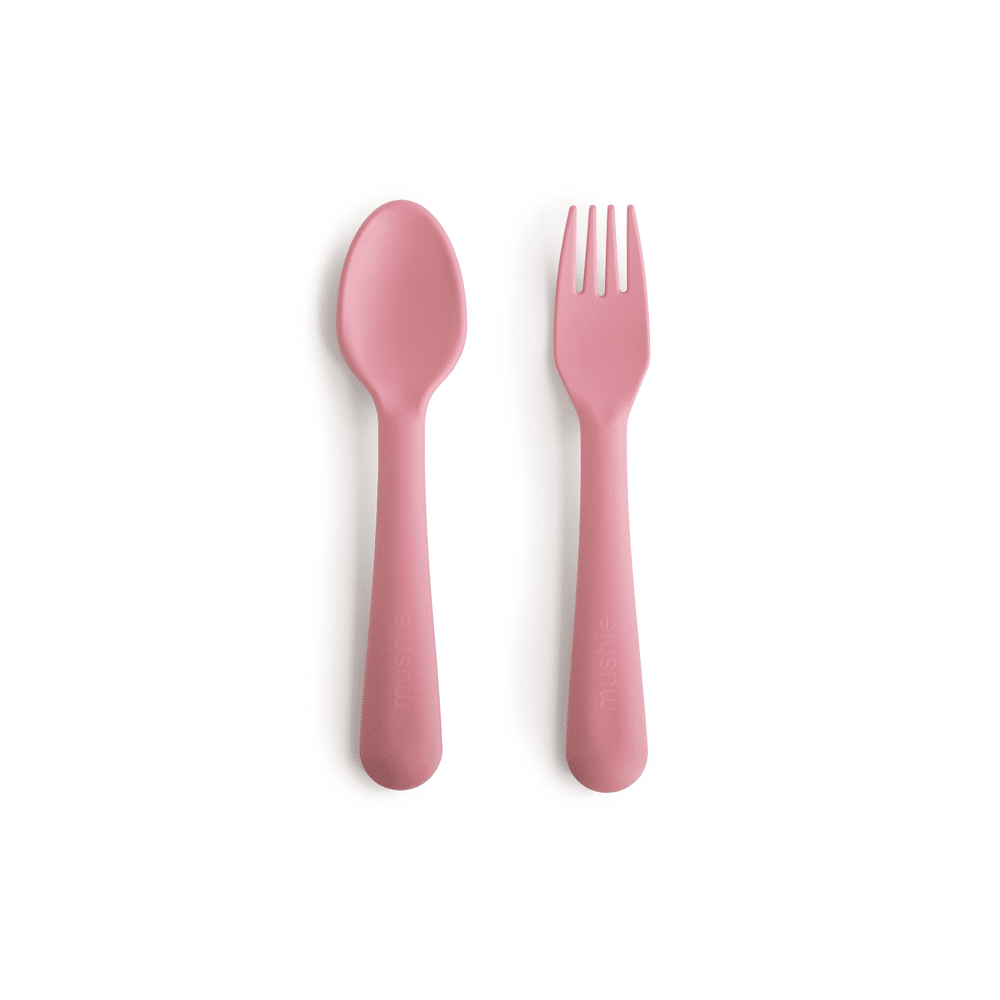 De Mushie Vork en Lepel in Dusty Rose zijn perfect voor kleine handjes. Ergonomisch, veilig en duurzaam materiaal maken eten leuk en makkelijk, terwijl het zachte design comfort biedt tijdens iedere maaltijd.