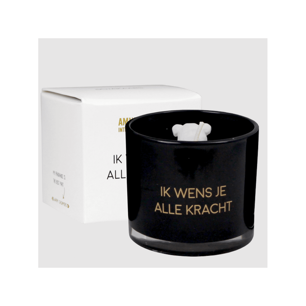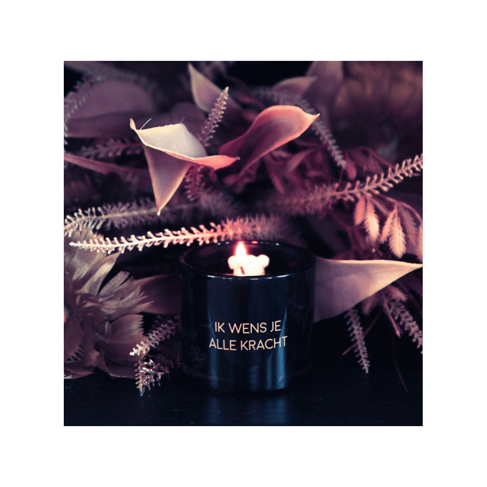 • Op de kaars staat de tekst: 'Ik wens je alle kracht' om de ontvanger te laten weten dat hij of zij niet alleen is.