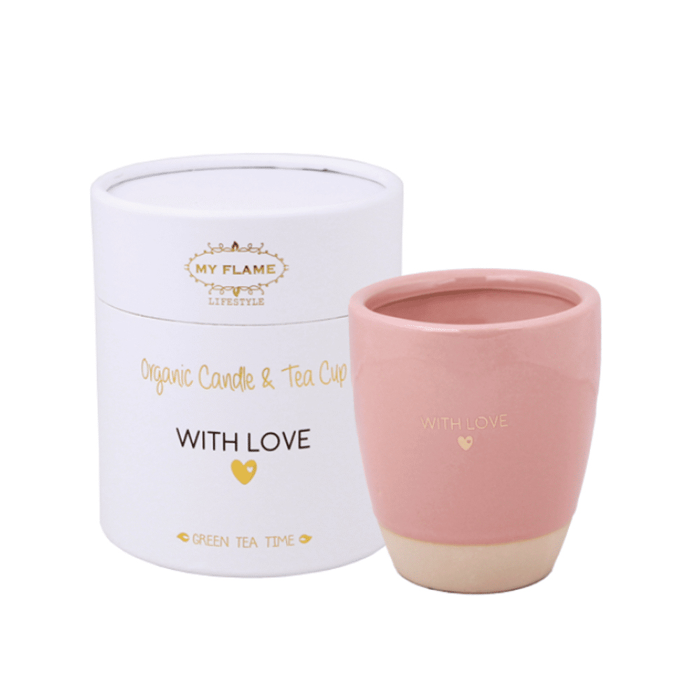 - Stijlvolle My Flame sojakaars in theekop met tekst With Love