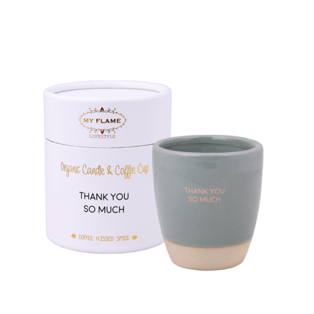 - Stijlvolle My Flame sojakaars in koffiekop met tekst Thank You So Much