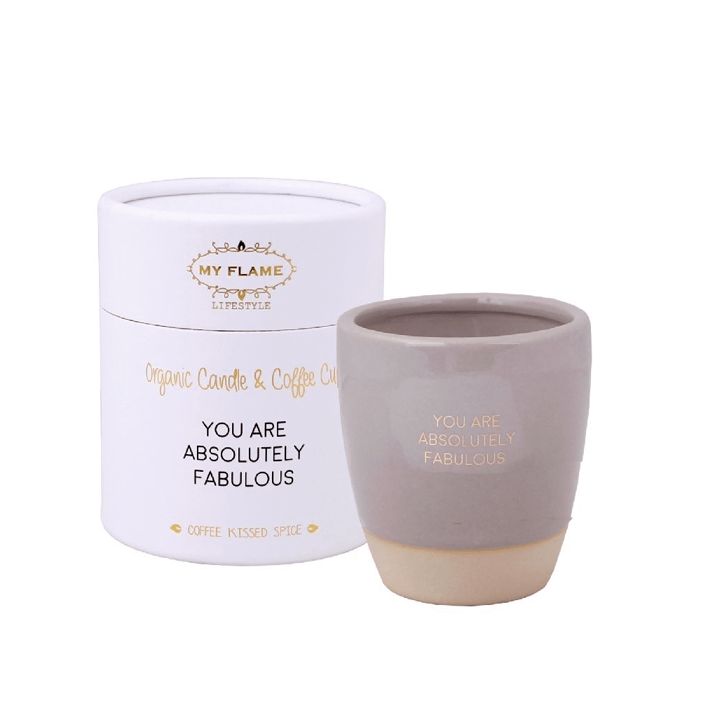 - Stijlvolle My Flame sojakaars in koffiekop met boodschap You Are Absolutely Fabulous