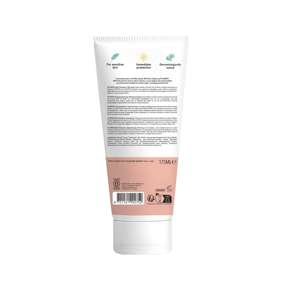 Deze zonnecrème bevat minerale UV filters die een beschermend laagje op de huid vormen en zonnestralen weerkaatsen. Daardoor werkt de bescherming meteen na het aanbrengen. De formule is vrij van parfum en andere onnodige toevoegingen, ideaal voor de gevoelige huid van baby en kind.