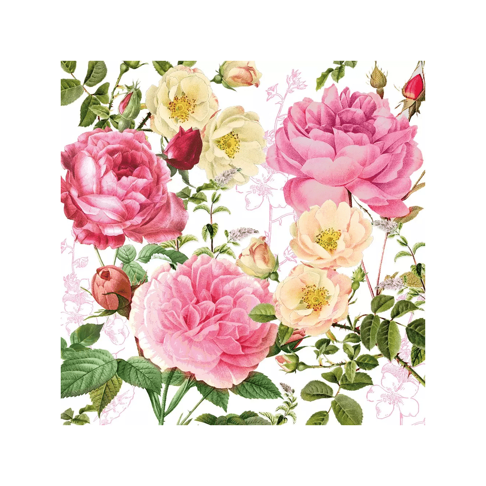 Breng kleur en stijl op tafel met de PPD Rosalie Servetten 33x33cm 20 stuks. Stevig, absorberend en voorzien van een charmant Rosalie-motief, ideaal voor feestjes, diners of gezellige momenten thuis.