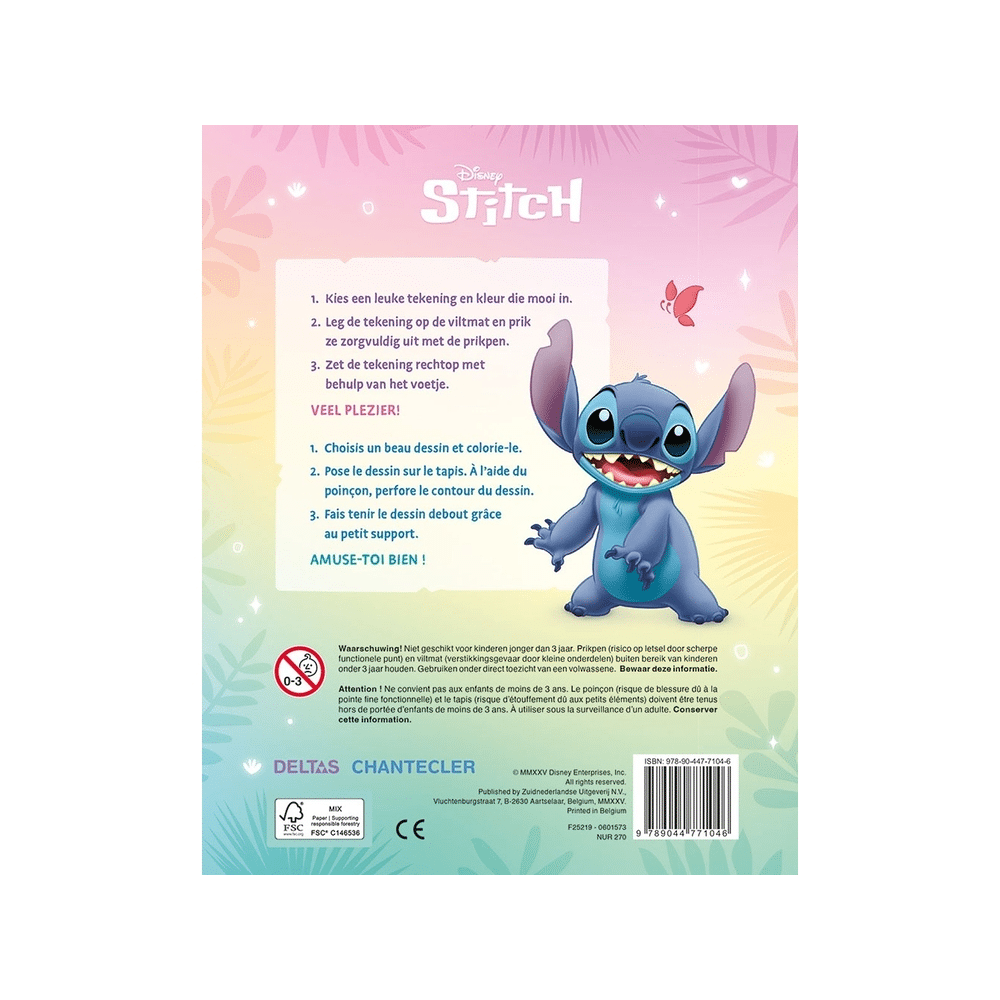 Het Disney Prikblok Stitch is niet zomaar een knutselboekje. Het is een slimme én leuke manier om je kind te laten oefenen met precisie en concentratie. Prikken, kleuren, uitstansen... en dan trots het resultaat bewonderen! Laat de magie van Stitch je kleuter elke dag inspireren.