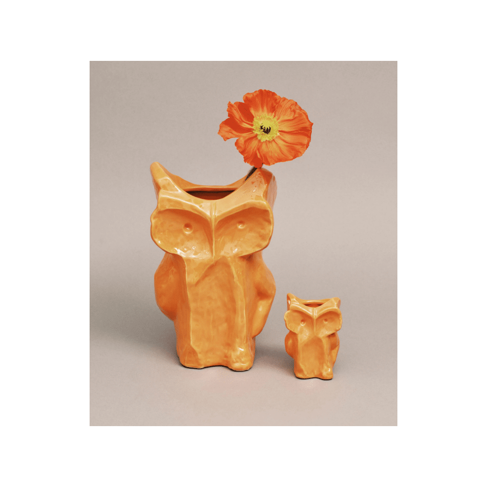 De Serax After Midnight Vaas Uil 9cm in oranje is een charmante en compacte decoratieve vaas, perfect voor kleine bloemen of als vrolijk statement in je interieur