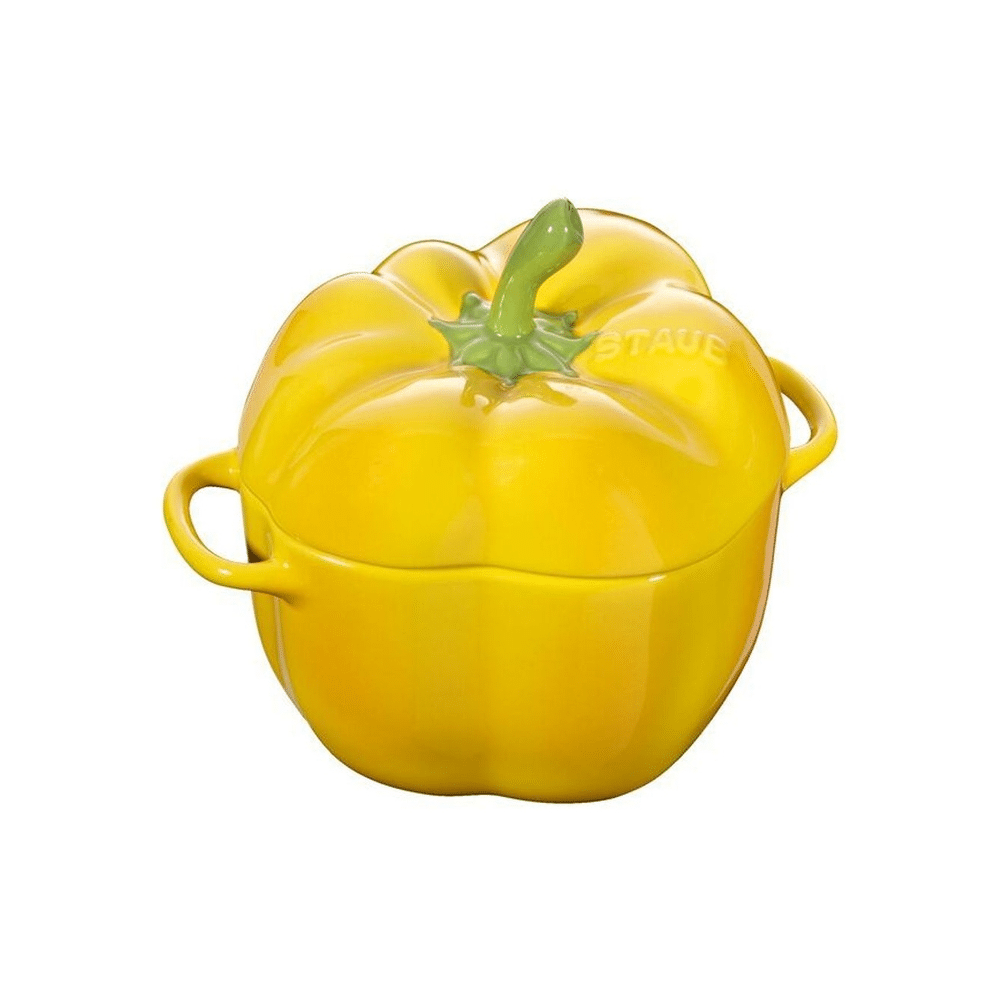 Met de Staub Ceramique cocotte in de vorm van een paprika breng je meteen kleur en charme op tafel. Deze unieke schaal in paprika geel is geïnspireerd op de natuur en zorgt voor een speelse maar stijlvolle presentatie van je gerechten. Ideaal voor kleine porties soep, groenten of bijgerechten bij vlees en vis.