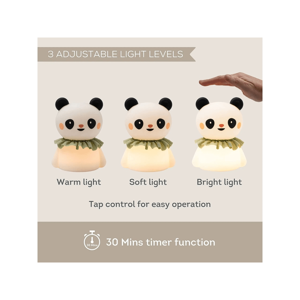 Dit nachtlampje combineert een schattig panda-design met een zacht, warm licht dat de slaap bevordert. Het is eenvoudig te bedienen en veilig voor kinderen.
