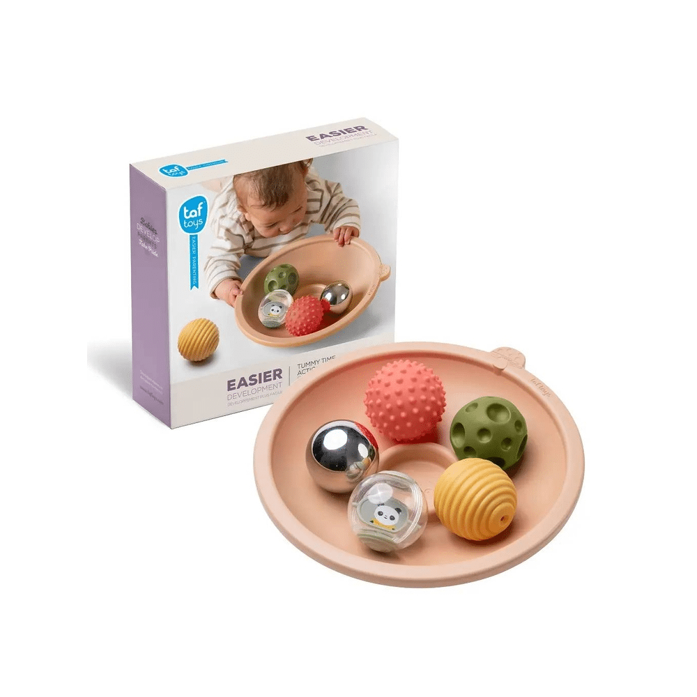 Het Taf Toys Tummy Time Adventure Activiteitenbord stimuleert de zintuigen van je baby en moedigt actief spelen op de buik aan. Ideaal om de motorische vaardigheden en coördinatie te ontwikkelen.