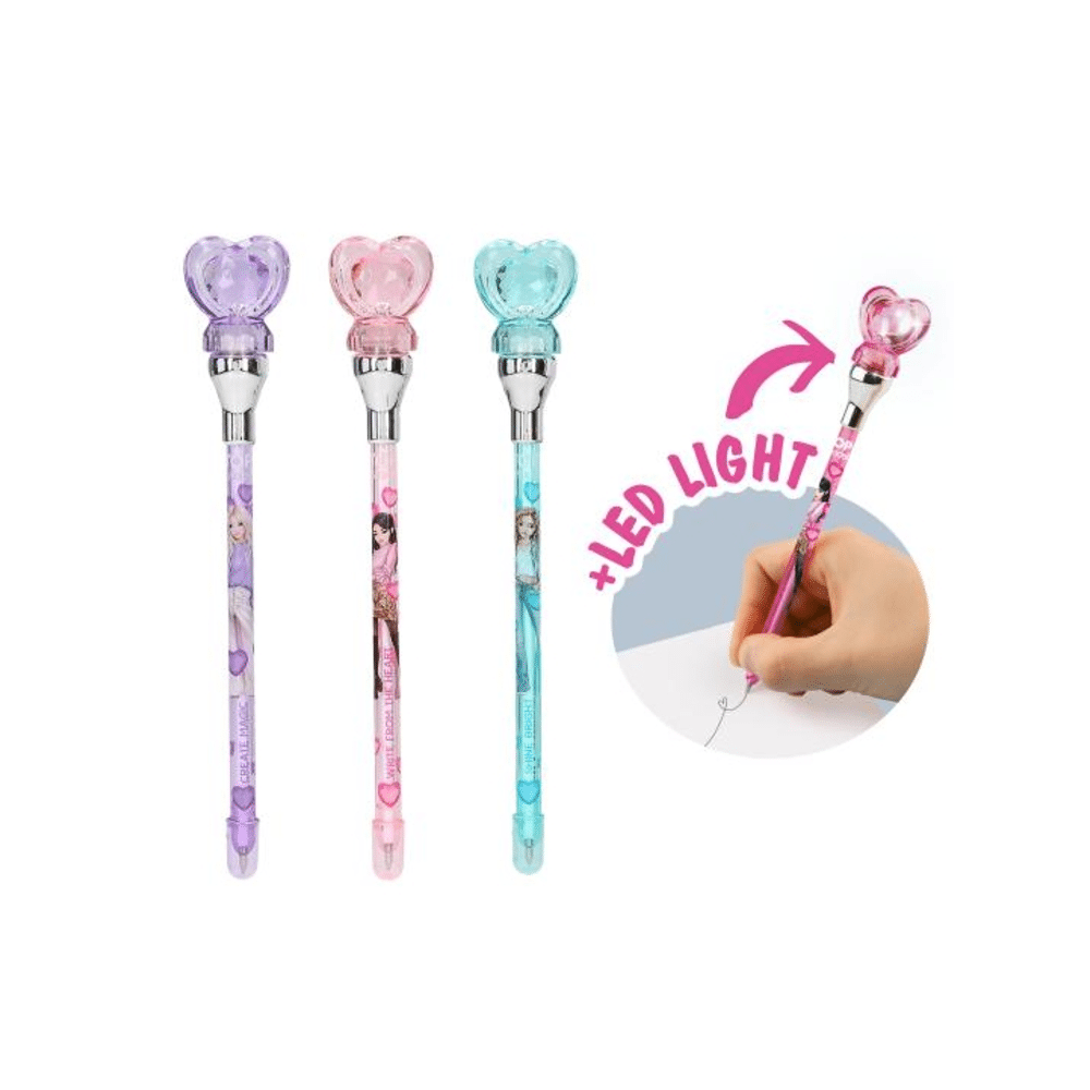 De Topmodel Pen met Licht Assortiment is een leuke en praktische pen met een speels lichtje. Perfect voor school, creatieve momenten en fans van de Topmodel stijl.