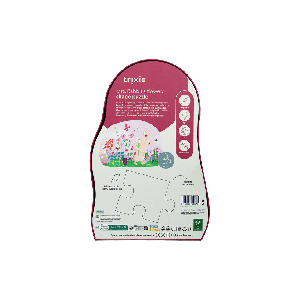 Deze 12-delige puzzel van Mrs Rabbit met bloemenmotief stimuleert vormen, kleuren en fijne motoriek. Elk stuk past perfect en helpt je kindje logisch denken te ontwikkelen. De vrolijke kleuren en het houten materiaal zorgen voor duurzaam en leerzaam speelplezier.