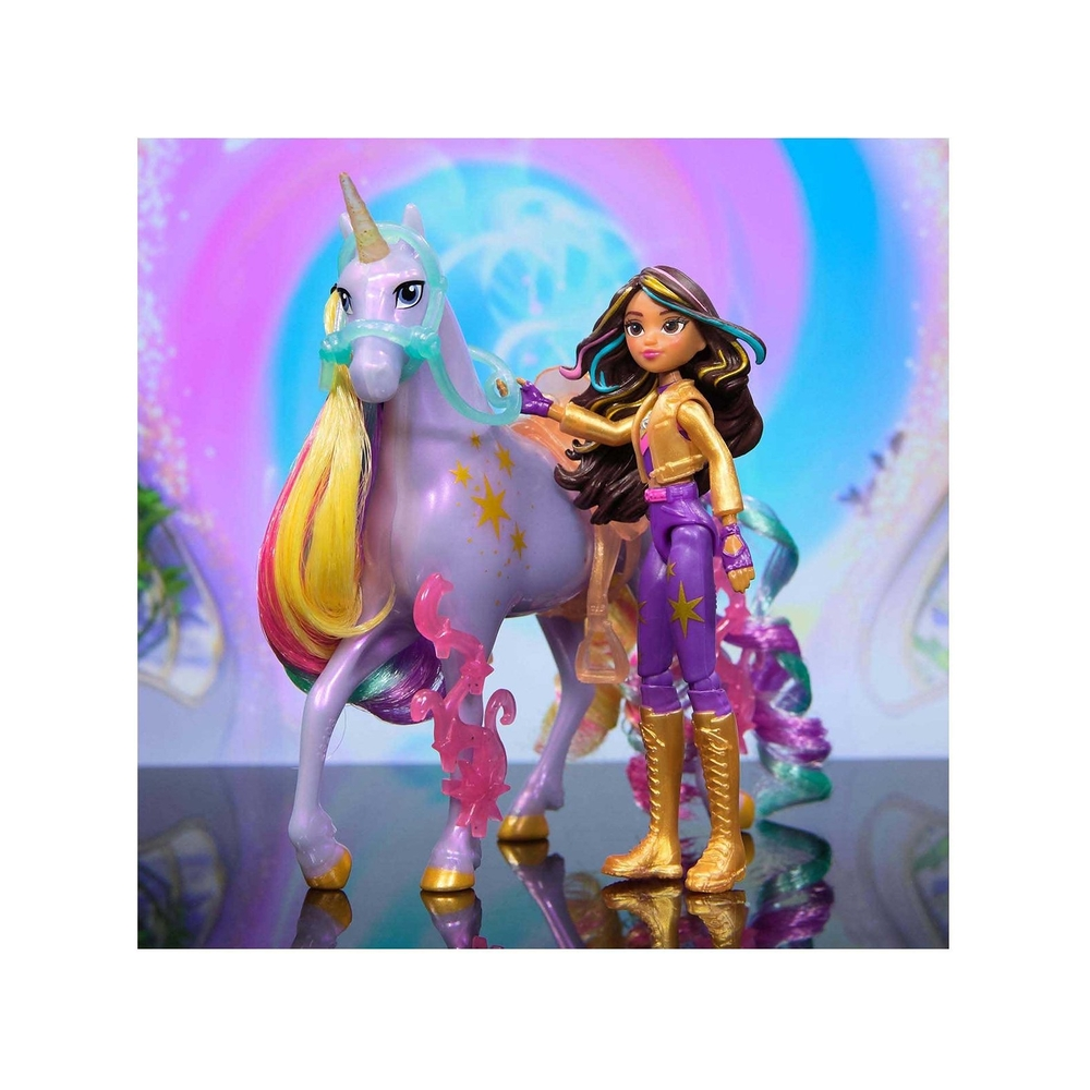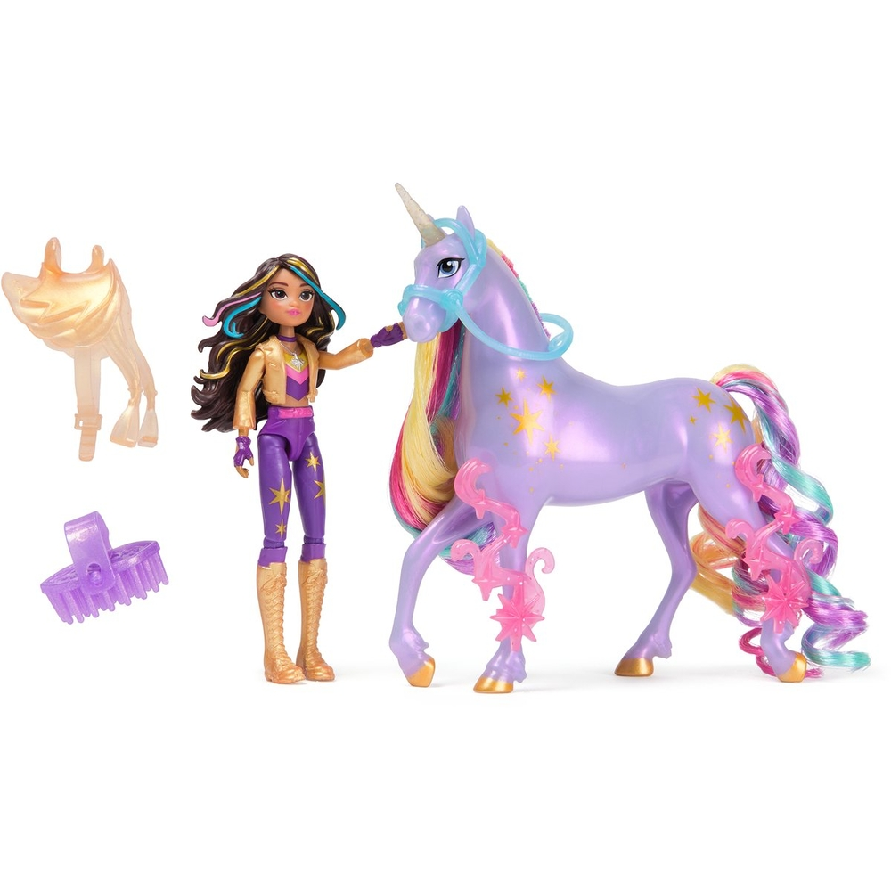 Duik in de magische wereld van de Unicorn Academy met Sophia en haar eenhoorn Wildstar! Sophia is een gedreven studente die samen met haar trouwe eenhoorn Wildstar allerlei betoverende avonturen beleeft. Het setje bevat een gedetailleerde pop van Sophia, compleet met een magische outfit, en haar prachtige eenhoorn Wildstar, die altijd klaar is voor een nieuw avontuur. Dit is de perfecte set voor kinderen die dol zijn op magische verhalen, eenhoorns en fantasierijk spel.
