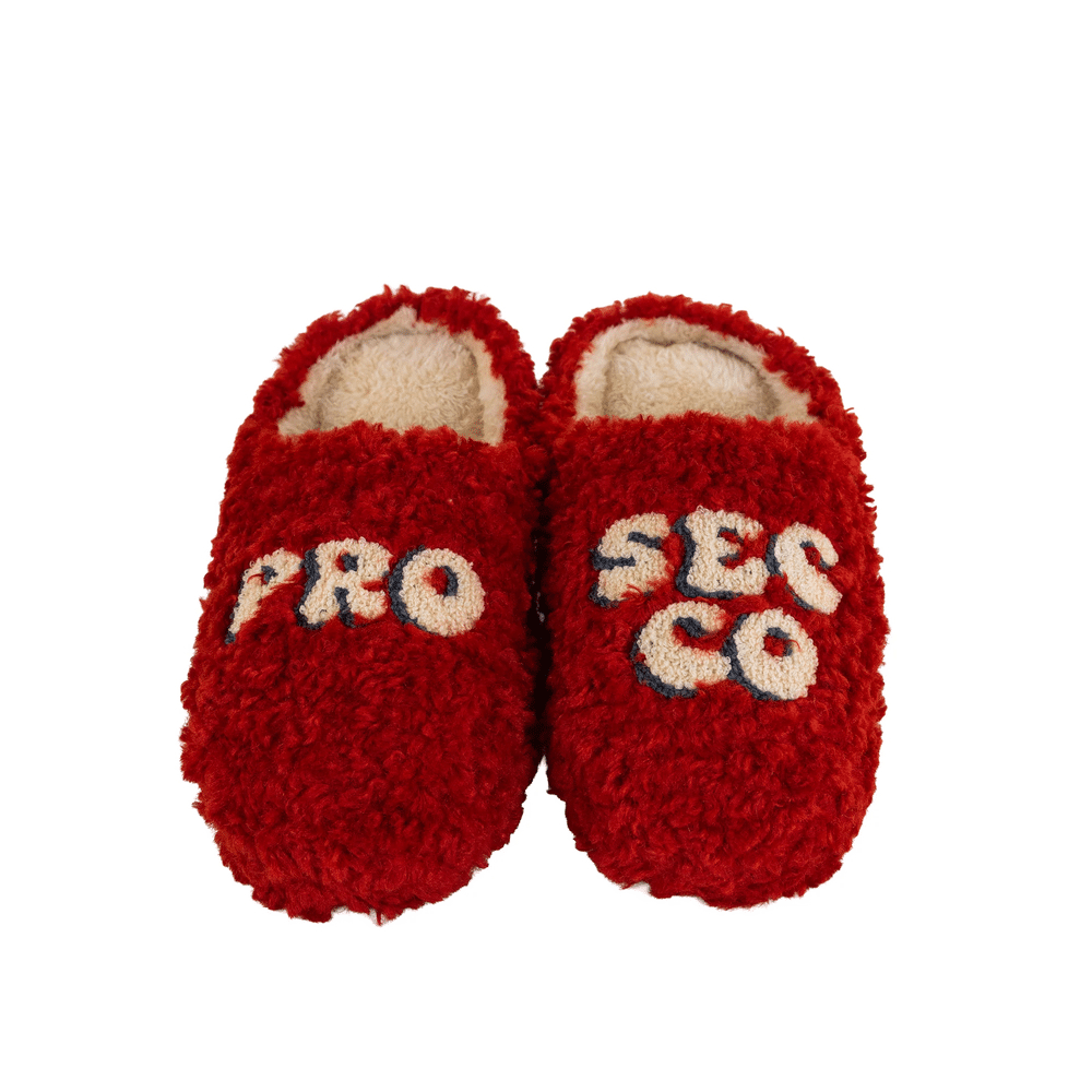 Stap stijlvol en cosy in deze zachte pantoffels in maat M/L.De speelse Prosecco print maakt elke stap thuis extra vrolijk.