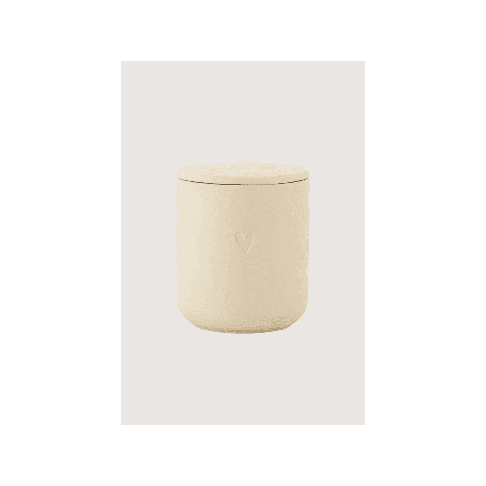 Deze geurkaars combineert hoogwaardig keramiek met een hartjesdesign. De zandkleur geeft een natuurlijke en tijdloze uitstraling aan elke kamer.