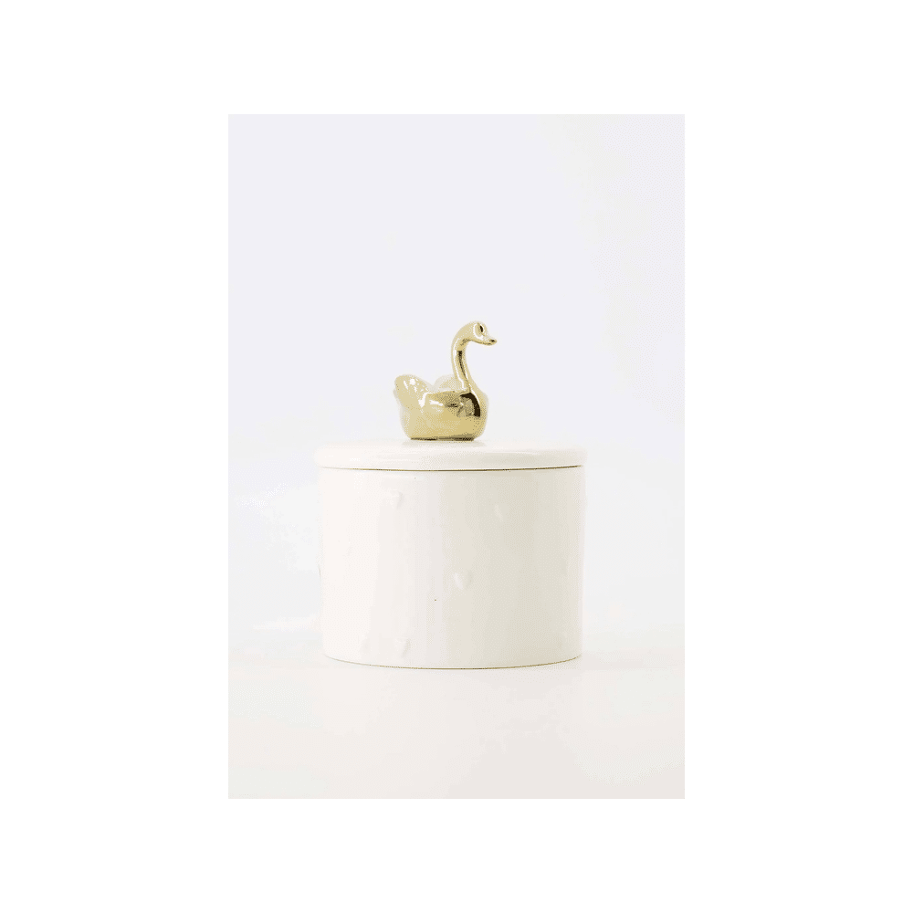 Zusss Geurkaars Keramiek Met Deksel M Zwaan Wit/goud