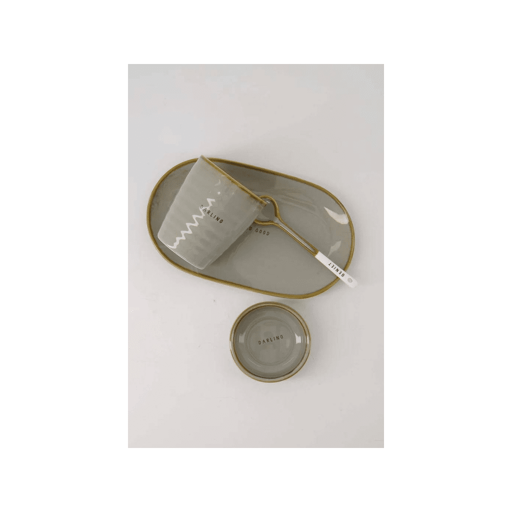 Zusss Lepeltje Keramiek Geniet Wit/grijsblauw