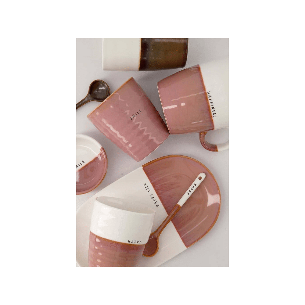 Zusss Lepeltje Keramiek Happy Wit/burgundy
