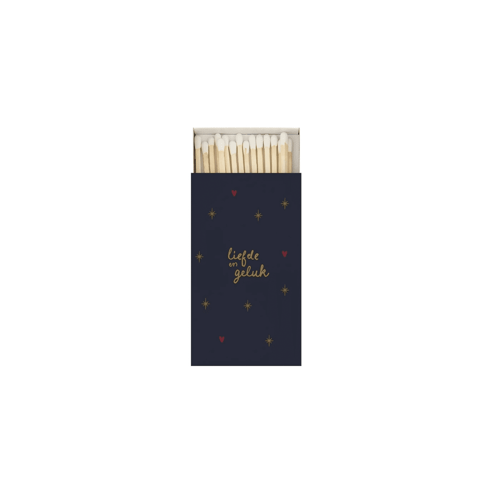 Of je nu een kaars aansteekt voor een gezellig avondje, een ritueelmoment beleeft of gewoon geniet van de kleine dingen in het leven, deze lucifers voegen een extra laagje charme toe. Het donkerblauw en goud zorgen voor een chique uitstraling die past bij elk interieur, van modern tot boho. Ook perfect als klein geschenk of attentie voor iemand die je lief is – want liefde en geluk zijn altijd het mooiste om te delen.